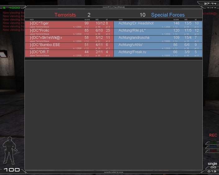 Zum Match Icy hätten wir mit 5on5 auf Terror sicher mehr als 4 Runden geholt. Als SF haben wir dann ganz gut gespielt. Rapid haben wir ständig Nades gefressen... und gemerkt, das wir keine Taktik o.ä. hatten um gegenzuhalten. So konnten wir nur 6 Ründchen auf beiden Seiten holen.