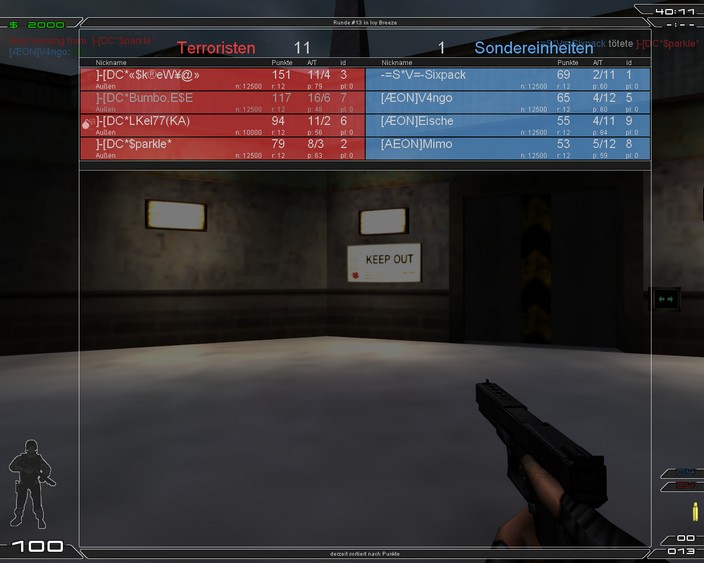 Auf Geta konnte AEON noch sehr gut gegenhalten und die Terrorseite nach Hause holen. Als SF hatten sie dann die gleichen Probs wie wir, nur mit dem Unterschied, das wir öfters als Terror durchkamen bzw. die Runden wo sie im Keller waren, gewannen.