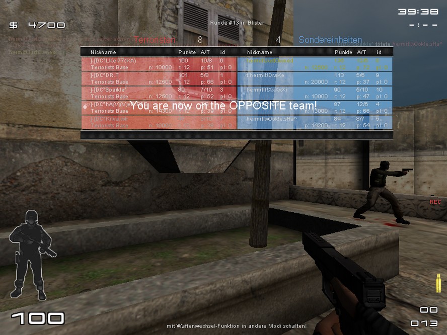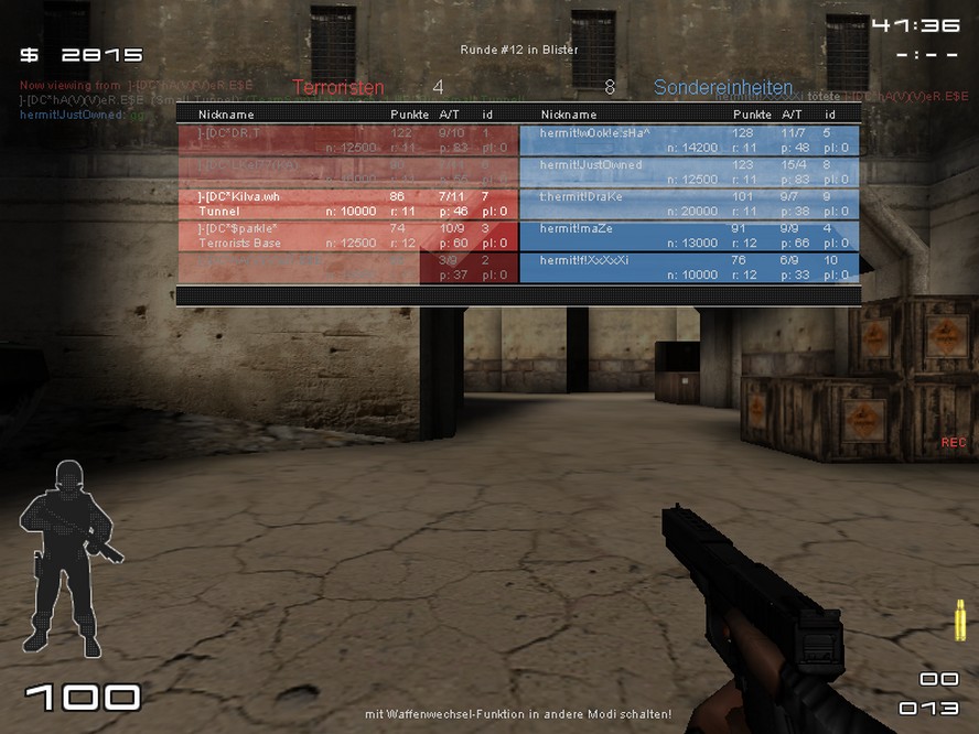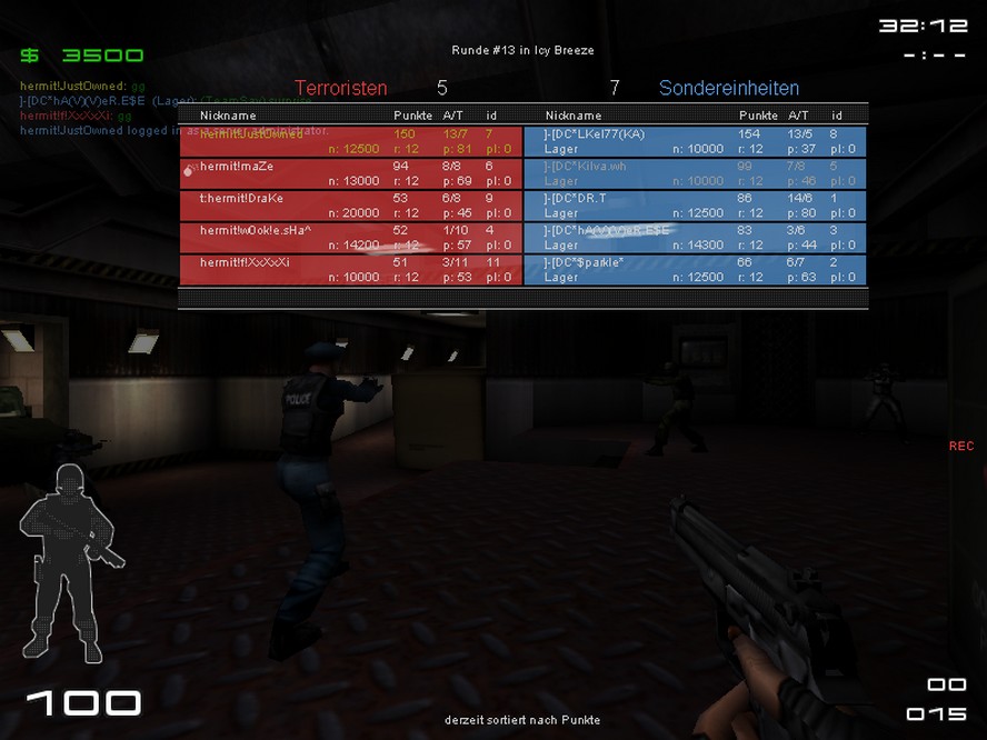 | Bericht | Funmatch gegen die Krabben... Auf Icy lief es für uns gut mit 9:3 und 7:5 Punkten. Posis und Ansagen passten und wir machten dann auch am Ende druck. So... Blister (deren Homemap) !!! Da wurden wir wie ein Schaaf... ![]() Am Anfang liefen wir wie Bots duch die Gegend und der Gegner nutzte es natürlich aus. Dort passte garnichts bei uns. Trotzdem konnten wir noch ein Unentschieden mit dem 2. Squad rausholen. Man merkt das die Krabben sich so langsam wieder aufrappeln. Doch das nächste mal wird es wieder für uns gut laufen. Vielen Dank an !hermit-Crew für das Lame- und Flamefreie Funmatch. Ach ja... Auf dem 3. Screenshot hatte ich nicht die möglichkeit auf Swat ein sshot zu machen, da die Krabben die Teams zu schnell switchten |