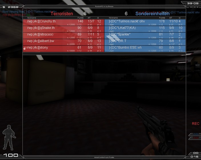 Bericht | Heute stand das fünfte Turniermatch für uns auf dem Plan. Die ersten vier haben wir allesamt verloren. Diesmal ging es gegen die Reichweitenprüfer und wir rechneten uns diesmal ein wenig mehr aus. Es begann mit ICY und ging wie in den vergangenen Wars weiter... wir spielten ICY irgendwie nicht wie sonst. Im Moment sind wir da ein wenig verpeitl. Aber RWP war wie immer auch ein guter Gegner auf ICY. Beide Mapseiten liefen sehr ausgeglichen und wir holten jeweils ein 6/6. Wechsel auf Thunderball Als Terror standen wir gut, hatten aber ein paar Lücken in der Verteidigung so das RWP 3 mal durchkommen konnte. Nun wechselten wir auf Thunderball und hatten die Aufgaben 4 Runden zu holen. Schnell merkten wir, das es nicht leicht werden würde. Wir lagen 1/5 hinten und rechten nicht mehr mit einem Sieg. Doch dann bekam Bumbo eine MSG in die Hand und räumte in der Garage auf. Dadurch konnten wir die zweite Runde holen. Mit dem Runden gewinn, waren mehr finazielle Mittel vorhanden ![]() ![]() ![]() ![]() ![]() ![]() ![]() Thx an RWP, obwohl ihr mit fakendem Ringer gespielt hat, war ein lustiges Match Auf einen Streitfall werden wir verzichten, weil, weil nitro geständig war ![]() @mein Team: Ich hasse euch ![]() |