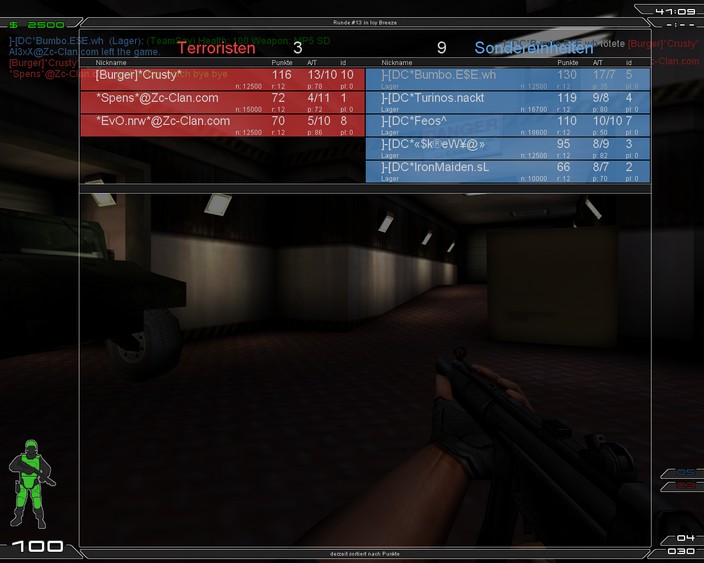 | Bericht | Eigentlich wäre heute XGC gegen ZC gewesen, aber die Jungs haben sich aus der Liga abgemeldet... da wir das Match schon terminiert hatten, haben wir es trotzdem gespielt. Es ging auf unseren Server, der heute mal wieder einen ganz schlechten Tag hatte. Neu war aber, das sogar das TS gelaggt hat^^ aber nicht lange. Bzw. so lange wir schlecht waren (Blister) war der Server schlecht auf ICY ging es dann wieder (auf ICY hat es uns nicht mehr gestört^^). Zum Match: Blister haben wir einfach so gezockt und naja schlechte 10 Runden geholt. 4 Runde auf unsere Map aufzuholen, ist normal im Bereich des möglichen. Auf ICY haben wir uns dann auch angestrengt, die Map mit 19/5 und das Match mit 29/19 nach Hause geholt! Somit haben wir uns auch die 3 Punkte in der XGC "verdient" ![]() Wie dem auch sei, danke an Spens und seine Jungs für das Macht PS: Spens schreibt immer so schön lange Warberichte, deshalb fällt meiner heute mal kürzer aus ![]() |