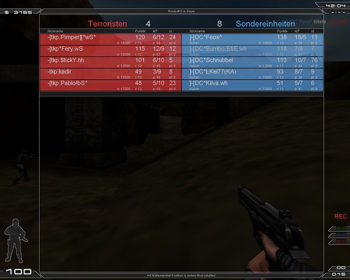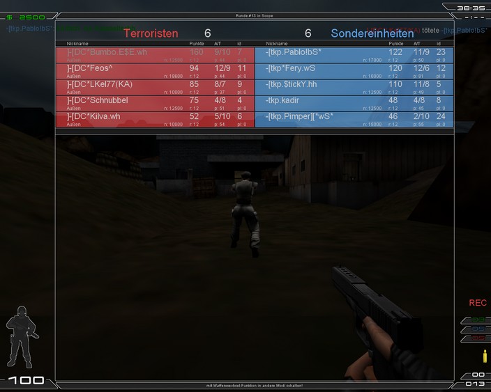Bericht | Nach langem, hatten wir mal wieder ein FM gegen -[tkp. Auf Scope (deren Map) hatten wir am Anfang einige Probleme mit der Orientierung und den Posis. Doch so langsam spielten wir uns ein. Glücklicherweise hatten wir für Scope Feos (Obwohl er ein bissel Erkältet ist). Teamplay und Ansagen passten und somit holten wir 14:10 Punkte. Nun kam unsere Homemap Icy... Für Feos kam dann IronMaiden. Dort passte einfach alles ![]() Ansagen, Posis, Taktik... Doch ein Problem hatte ich (Kilva) auf der Swatseite. Ich kam irgendwie in einer Runde nicht die Leiter auf B hoch. Ein Bug? Oder doch nur zu schwach^^ Vielen Dank an -[tkp. für das Flamefreie Funmatch Bis zum nächsten mal... |