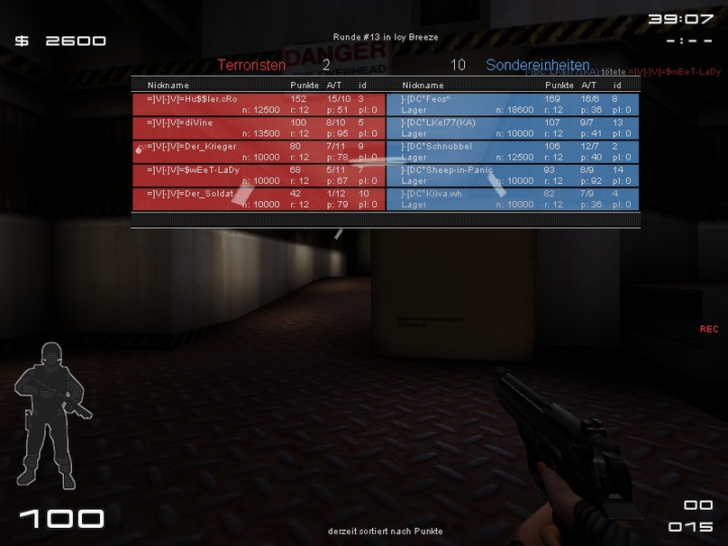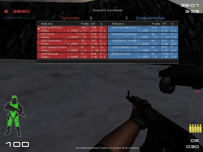Bericht | Entscheidende 3 Punkte für IGL... Bericht: Wir konnten uns auf beiden Maps sehr gut durchsetzen. Heute spielte auch mal das ![]() Obwohl der Server von =]v[-]v[= nicht richtig Konfiguriert war, bedanken wir uns trotzdem für das Flamefreie Match. Bis zum nächsten mal... |