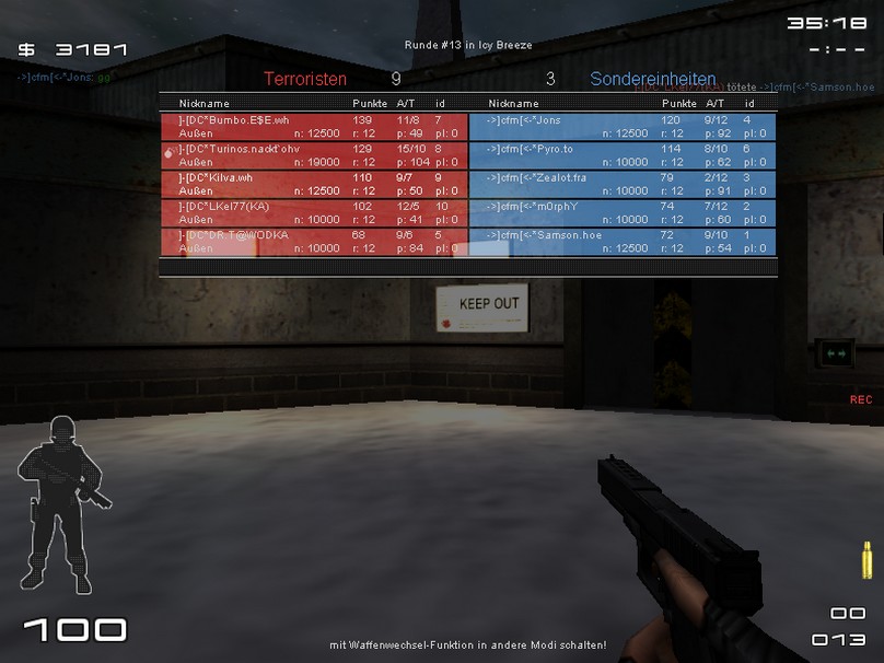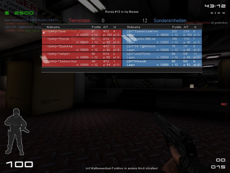 Bericht | IGL Match Nr. 6 gegen Canabis for men. Bei dem Namen, kann man eigentlich davon ausgehen, das sie Vegetarier sind. Gut dachten wir uns auf ICY SF, nachdem wir als Terror nicht große Problem hatte und 9/3 gewannen, geben wir ihnen mal was zu essen. Aber irgendwie schmeckten ihnen unsere Gurken nicht... und ich habe noch zu Turi gesagt: Hol doch lieber Würstchen, die passen besser! Er wollte nicht hören und fütterte sie die ganze Zeit mit Gurken. Da Kilva ja auch so ein netter Mensch ist, hat er auch noch das alte Party-Gurkenglas ausm Keller geholt und auf A hingestellt. Die Gurken waren wohl ebenso schlecht wie die von Turi. Ein paar Unmutsbekundungen von cfm. Möglich das sie ein wenig Canabis vor dem War geraucht hatten... so was gehört sich nicht! Geta war dann nicht mehr so leicht. Bei Dr.T hat der Wodka und der Wein angefangen zu wirken und bei cfm wohl das Canabis... Sie hielte relativ gut, bis einem wohl schlecht wurde von den ganzen Gurken und dem Gras, das er den Server verließ. So hatten wir dann auch auf Geta Terror leichtes Spiel mit cfm, was man am Ergebnis deutlich erkennen kann. Thx 4 Match und die 3 Punkte! Mehr aber nicht! Wenn ihr nicht damit leben könnt, das in Ligamatches alle Waffen erlaubt sind, dann solltet ihr euch ganz schnell wieder abmelden oder vor jeden War eine Taschentuchpackung zurecht stellen... |