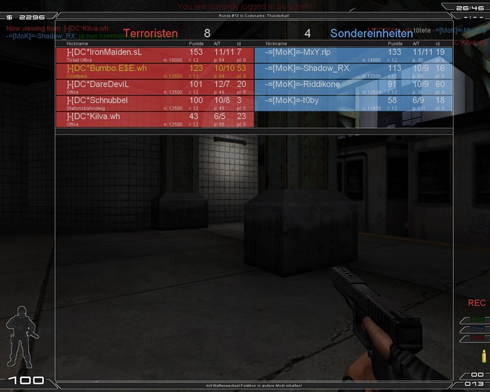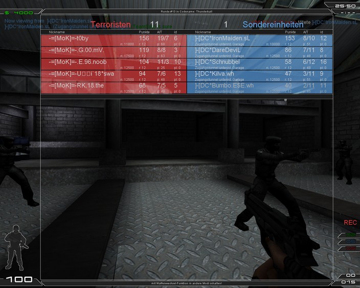 Bericht | Nach langer Zeit mal wieder ein FM gegen MOK. Wir begannen mit deren Map Thunderball ![]() Ok gespielt haben wir auch! Als Terror hat man es bekanntlich sehr viel leichter... und wir holten auch unsere Runden. Die Terrorseite spielten wir bei uns, da sich aber MoK beschwerte, wechselten wir nach der Seite. Komisch war nur, dass MoK auf unserem Server 100+ Pings hatte und auf ihrem eingenen 50. Treffen konnte man sie trotzdem! 8 Runden als Terror mehr oder weniger ercampt! Ein paar Runden sind wir auch gerusht^^. Als SF war nicht viel drin. Man merkte gleich, das Mok ihre Map aus dem FF kennt. 1 Ründchen konnten wir ihnen entreißen. Auf ICY ging es für uns super los. Die Rushs klappen, den Kistenraum bekamen wir auch gut sauber und der Rest hat auch gepasst! 10 hervorragende Runden waren unser ![]() Danke an Mok für das lamefreie FM |
