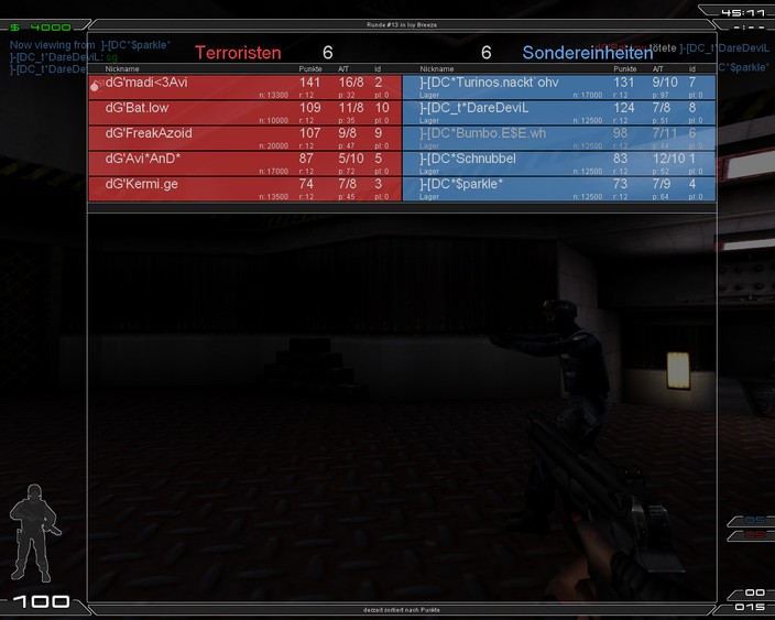 Bericht | Gegner dG, Ziel: keine Klatsche bekommen ![]() Auf dem Speiseplan standen heute Getaway und ICY. Auf Geta haben wir für unsere Verhältnisse sehr sehr gut gespielt. Als SF verteidigten wir sehr gut und erkämpfen uns 8 Runden. Als Terror wurde es für uns sehr schwer. Doch wieder spielten wir gut und holten 5 Runden. Somit hatten wir DEREN Map mit 13/11 gewonnen. Die Stimmung im TS war bestens. Jetzt noch unsere Map nach Hause bringen und unsere lange Niederlagen Serie hat ein Ende ![]() ![]() Danke an .GSL^^ und sein Team für das feine, lustige, spannende, lame- und flamefreie also kurzgesagt: Perfekte FM! Sehr gerne mal wieder ![]() |
