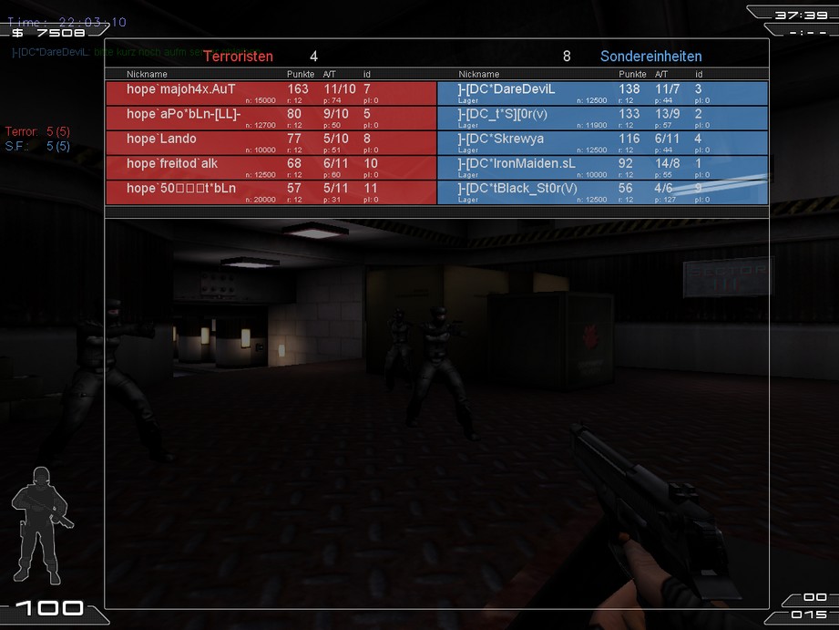 Bericht | Heute stand ein FM gegen die Neugründung "The Hope Never Dies" an... Jeder von uns kennt eigentlich fast jeden Member von hope´. Daher wussten wir auch, wie stark sie ungefähr einzuschätzen waren. Doch nun zum Spiel ... Angefangen mit deren Map Trainstation: Auf der Seite der Terroristen ging es mit verteilten Positionen auch recht zügig los. Angespannt waren wir alle. Denn keiner wusste so wirklich, wie hope` (mit teils verschiedenen Ex – Clans) so das Teamplay zustande bekommen würde. Zu unserer großen Überraschung konnten wir uns doch sehr hoch auf der Defensiv – Seite von Trainstation halten und holten somit 10:2 Punkte. Puh *schweißabwisch* ![]() Seitenwechsel... Nun lag es an uns, die Hossen zu befreien. Auf Swat war es natürlich schwerer uns gegen hope` durchzusetzen. Trotzdem konnten wir dem Gegner mithalten und verloren knapp mit einem Punktestand von 5:7. Halbzeit: 15:9 Nach ca. 4-5 Minuten Schallgeschwindigkeit und Toilettenpause waren wir endlich wieder bereit. Nun hieß es unsere Homemap Icy Breeze. Wie immer ist es kalt dort. Aber wir haben uns ja schon daran gewöhnt. ![]() Los ging es auf Terror. Da Lando die Taktik von uns sehr gut kannte, wussten wir gleich, das es nicht so einfach werden würde die Bombe zu legen. Geschweige denn die Leute von hope` zu eleminieren. Aber gut... Wir haben unsere Taktik durchgezogen und mussten leider auch ein paar Runden abgeben. Dennoch gewannen wir auf der aktiven Seite mit 7:5 Punkten. Zwischenstand nach 36 Runden: ]-[DC 22 Punkte - hope` 14 Punkte Jetzt hieß es für uns auf der Seite Swat... 3 Punkte zum Sieg. Adminreset und auf los gings los. Nach den ersten 3 Runden waren wir (bzw. ich) an zweifeln, ob wir überhaupt unsere 3 Punkte schaffen würden. Denn die ersten 3 Runden hatten wir verloren. Doch dann kamen wir... zusammengerissen und ordentlich sitzend haben wir Runde für Runde die Punkte geholt und alles abgeblockt, was hope` versucht hatte. Eine Runde konnten sie noch holen und dann war auch schon Schluss. 8:4 Punkte hieß es am Ende für uns. Und somit ein verdienter 30:18 Sieg für uns. Vielen Dank an hope` für das Lame- und Flamefreie Match. Das Rematch wird’s bestimmt auch bald geben ![]() So Long MfG Nico |