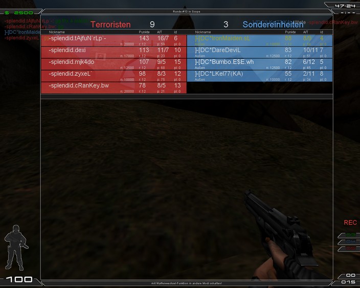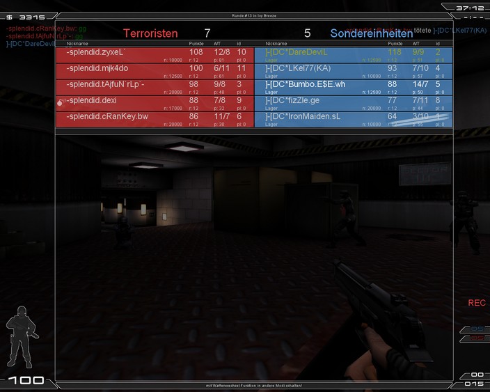 Fizzle`s score auf scope sf war ein Kill/Death verhältnis von Sage und Schreibe: -2:12 mit ca 40 puntken oder so. screenie gibs leider nich davon da er sich vom server gekrümelt hat bevor der letzte *kaffeeimmolukkenkaffeetrinker* down war Zuletzt editiert von DareDeviL, am 15.04.2008 um 21:54 Uhr (2x Editiert) |