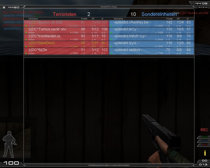 Bericht | OpenMatch Nachholspiel von Spieltag 1 Begonnen auf einem ESE Server, geendet auf einem normalen. Auf deren Map schwach gewesen auf unserer ordentlich! Hätten wir uns mehr angestrengt, hätten wir das Ding wahrscheinlich noch drehen können. Tja aber wie zuletzt so oft, fehlte uns ein bisschen das Glück. Morgen beginnt eine neue Woche, mal sehen ob wir dann mal wieder ein grünes Licht anknipsen ![]() Thx 4 Match und danke an Dexi, dass er uns erlaubte einen gesperrten Spieler aufzustellen. Deine junge wilde Bande musst du aber noch ein bisschen erziehen ![]() |