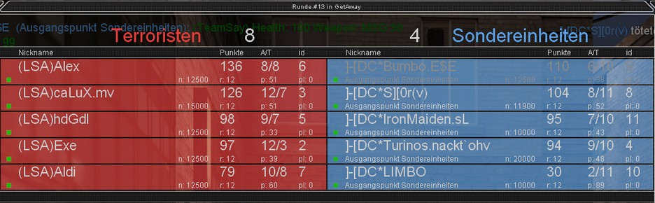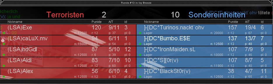 Zitat Blackstorm: "Ich muss auch mal Pissen" (bei Matchpause weil LSAer ausgetimt ist) Leader: "Vergiss es, bind dir Konten rein!" |