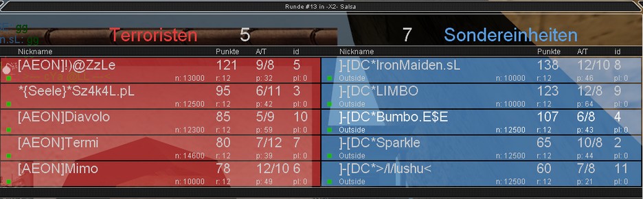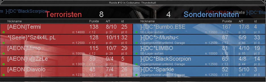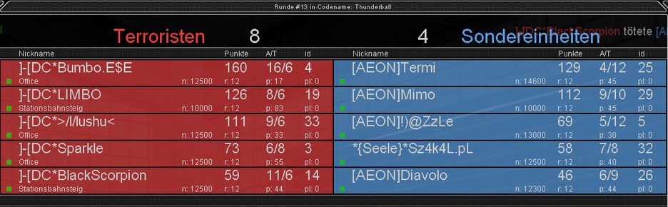 Spieler | $parkle*, >Mushu<, BlackScorpion, Bumbo, IronMaiden.sL, LIMBO, | |||