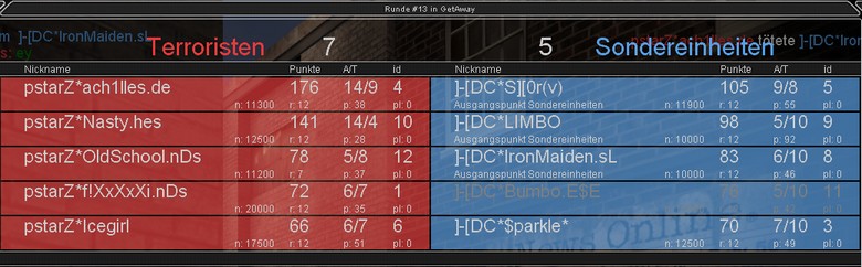 Spieler | $parkle*, Bumbo, IronMaiden.sL, LIMBO, Skrewya, S][0r(v), | |||