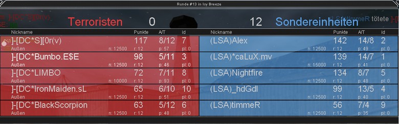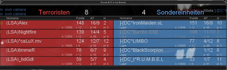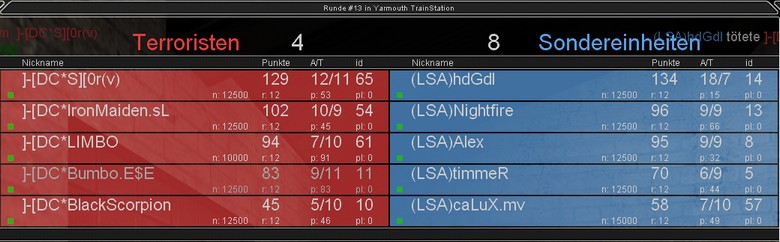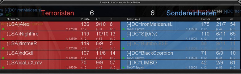 Spieler | BlackScorpion, Bumbo, IronMaiden.sL, LIMBO, R.U.M.B.E.L, S][0r(v), | |||