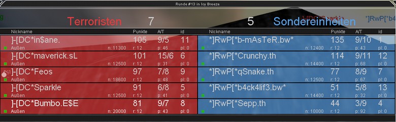 Spieler | $parkle*, Bumbo, Feos, insane., maverick, | |||
